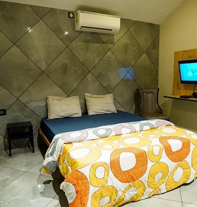 5 luxury rooms with attached bathrooms, a large hall, and space for 15-20 guests.